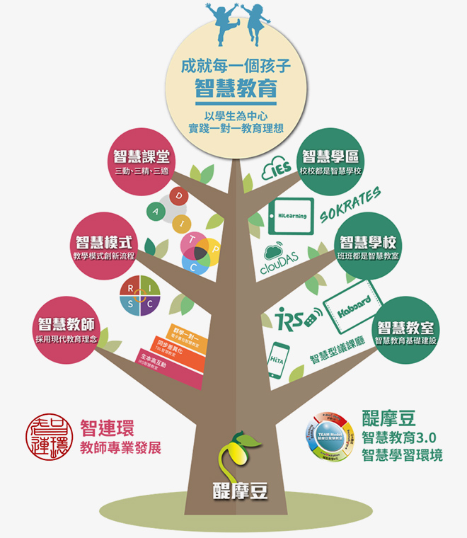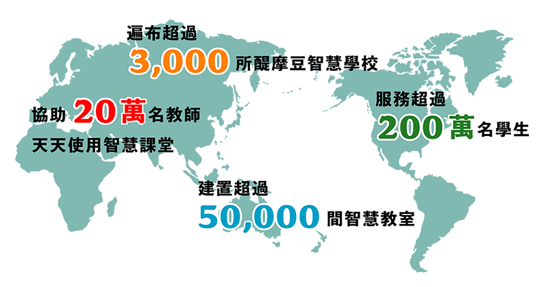 醍摩豆智慧教育,1999年創(chuàng)立,累積20年的教育科技研發(fā)成果,以「發(fā)揮科技在教學(xué)上的積極貢獻(xiàn)」、「傳播有效能的e化教學(xué)模式與策略」、「創(chuàng)造教育的無限可能」等三大教育科技愿景為集團(tuán)長遠(yuǎn)的發(fā)展方針。發(fā)展醍摩豆(TEAM Model)AI智慧學(xué)校的完整解決方案,包括教室端智慧教學(xué)系統(tǒng)、學(xué)生終端智慧學(xué)習(xí)服務(wù)、云端分析管理平臺服務(wù),以及能有效促進(jìn)教師教與學(xué)生學(xué)的行為分析系統(tǒng)等,在全球持續(xù)建立智慧學(xué)校版圖,目前已超過5萬間智慧教室、200萬名學(xué)生常態(tài)化使用。