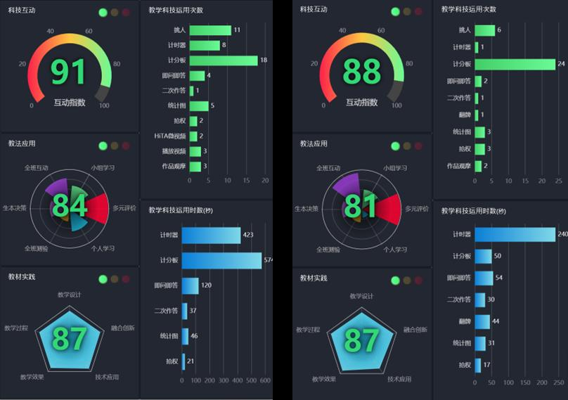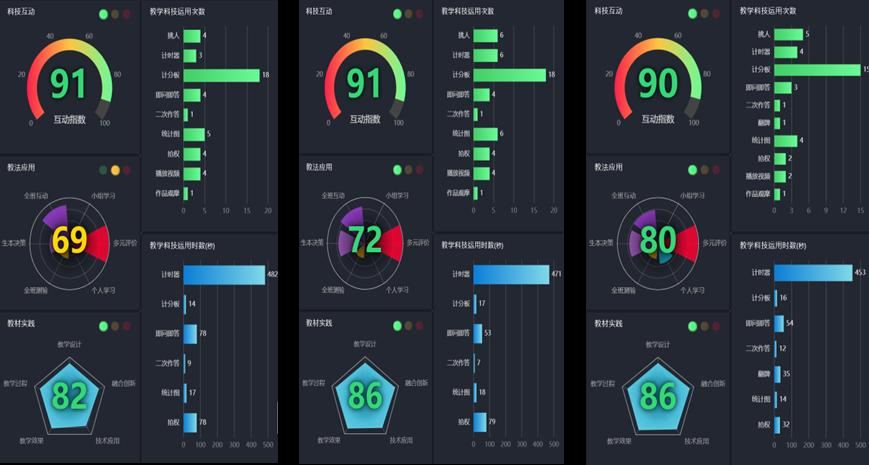 在這些數(shù)據(jù)的提醒與幫助下,教師再通過自己不斷的實踐,反復(fù)鉆研提升,一步步調(diào)整及優(yōu)化教學(xué)行為,獲得自我提升的成功感,以自身專業(yè)能力的提升促進(jìn)課堂教學(xué)質(zhì)量的提高。
