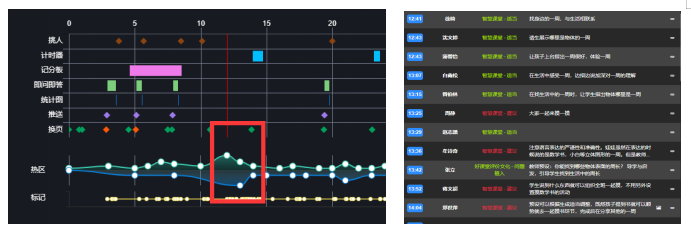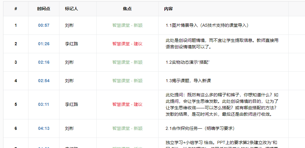 3.1數(shù)據(jù)支持,找準研修的點 一堂課,觀課教師有不同的想法,某些環(huán)節(jié)有人認為做的好,同樣有人認為有疑惑,向這樣的沖突點在平臺記錄上一目了然。以《什么是周長》一課為例,根據(jù)圖表顯示,課堂12分左右張老師讓孩子感受什么是一周這個環(huán)節(jié)時出現(xiàn)了爭議點(如圖六所示)。