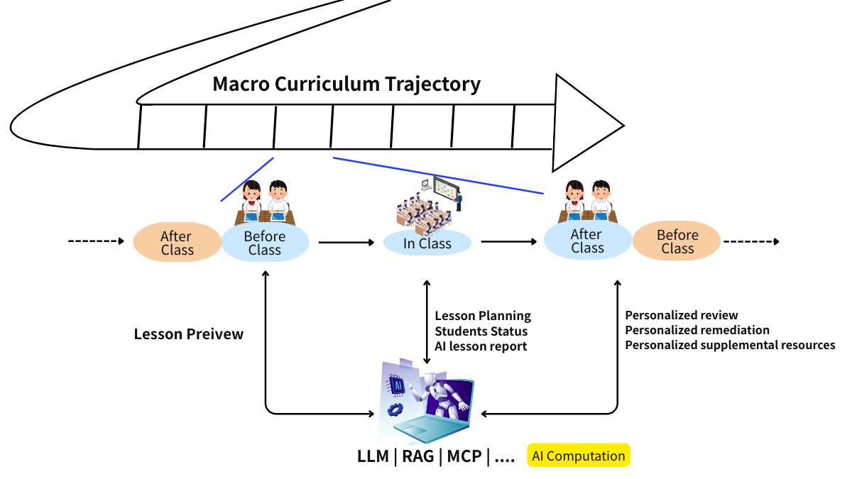 整體HiTeach平臺課中群學(xué)差異化和課后自學(xué)適性化的學(xué)習(xí)路徑架構(gòu)是基于自發(fā)、互動、共好的核心理念,希望能落實(shí)到班級、學(xué)校、學(xué)區(qū)的學(xué)習(xí)組織型態(tài),并依此設(shè)計(jì)HiTeach平臺課程知識體系,同時(shí)引入AI蘇格拉底技術(shù)輔助教師專業(yè)發(fā)展,促進(jìn)教學(xué)數(shù)位轉(zhuǎn)型之系統(tǒng)性、大規(guī)模、常態(tài)化應(yīng)用。