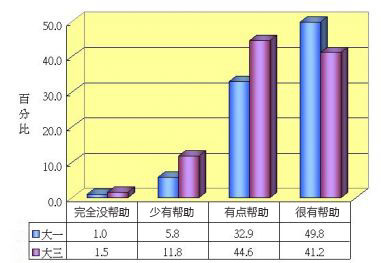 根據(jù)臺(tái)灣高等教育數(shù)據(jù)庫(kù)94學(xué)年度大一與大三學(xué)生問(wèn)卷數(shù)據(jù)顯示,有82.7%的大一學(xué)生、85.8%的大三學(xué)生認(rèn)為師生交互的教學(xué)方式有助于學(xué)習(xí),認(rèn)為少有幫助或完全沒(méi)幫助的比例僅占6.8%及13.3%,顯示超過(guò)八成的學(xué)生認(rèn)為交互教學(xué)是有效的教學(xué)方式。
