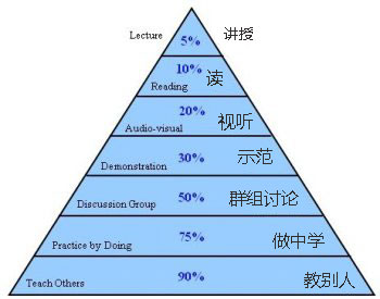 依據(jù)1969年Edgar Dale所提出的經(jīng)驗(yàn)金字塔而發(fā)展出的學(xué)習(xí)金字塔(learning pyramid),即愈往金字塔頂端的教學(xué)方法,學(xué)生的記憶保留率愈少,如講授(Lecture)教學(xué),課后學(xué)生記憶保留率只有5%,即使輔以視聽(tīng)教學(xué),保留率也只有20%;而愈往金字塔下層則記憶保留率愈高,如做中學(xué)(Practice by Doing)教學(xué),記憶保留率可達(dá)75%;教別人(Teach Others)的方式甚至可以達(dá)到90%的記憶保留率。從學(xué)習(xí)金字塔可以看出:愈采取教師中心取向的教學(xué)方法(金字塔頂端),學(xué)生上完課后的記憶保留率愈少;愈采取學(xué)生中心取向的教學(xué)方法(金字塔下層),學(xué)生課后記憶率愈多。雖然以教師中心取向的講授式教學(xué)法具有能夠有系統(tǒng)地傳遞知識(shí)的優(yōu)點(diǎn),但學(xué)生卻成為被動(dòng)的學(xué)習(xí)者且學(xué)習(xí)成效不彰,透過(guò)以學(xué)生中心取向的交互教學(xué)法,可以大幅度提昇學(xué)生的學(xué)習(xí)成效,此為交互教學(xué)與講授教學(xué)最明顯的差異。這種結(jié)論也提醒我們:老師“教了多少”,并不等于學(xué)生“學(xué)到多少”。