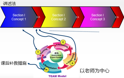 TEAM Model適用于各種教學(xué)方法與策略 TEAM Model可有效率地應(yīng)用于各種教學(xué)方法與策略,將各種不同教學(xué)方法的優(yōu)點(diǎn)充分展現(xiàn)出來(lái),我們后續(xù)會(huì)介紹TEAM Model應(yīng)用于各種教學(xué)方法與策略的應(yīng)用,例如下面是應(yīng)用于講述法的示意圖。