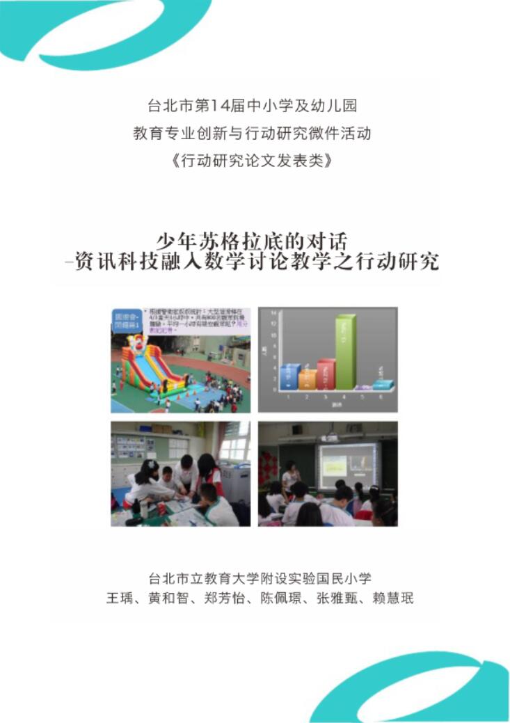 臺(tái)北市立教育大學(xué)附設(shè)實(shí)驗(yàn)國(guó)民小學(xué)研究論文《少年蘇格拉底的對(duì)話-信息科技融入數(shù)學(xué)討論教學(xué)之行動(dòng)研究》,榮獲教育部行動(dòng)研究論文類特優(yōu)獎(jiǎng),其由王瑀老師為首的研究團(tuán)隊(duì)更兩度于99及101年度榮獲教育部全國(guó)信息科技融入教學(xué)創(chuàng)新典范團(tuán)隊(duì)之殊榮。本研究學(xué)校-臺(tái)北市立教育大學(xué)附設(shè)實(shí)驗(yàn)小學(xué)
