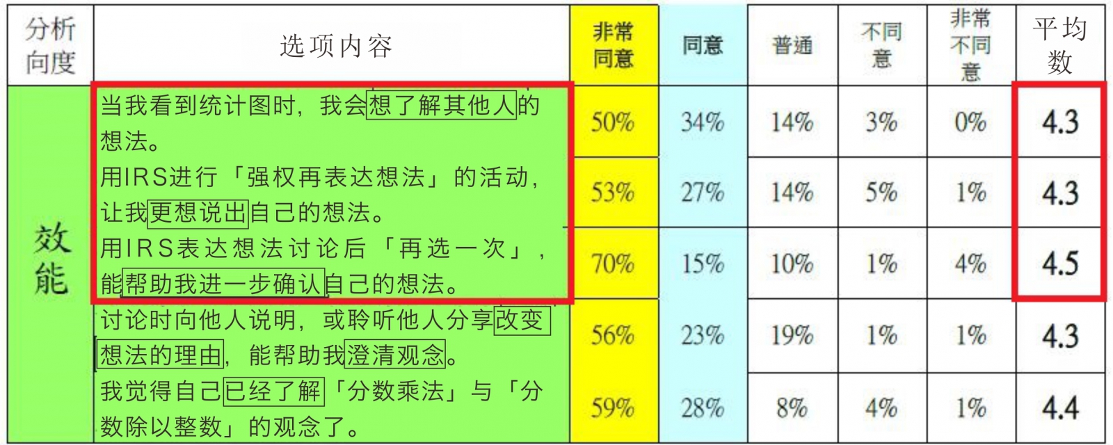 激發(fā)討論教學(xué)模式為此,本研究以「思考金三角」為核心概念,以「激發(fā)思考之教學(xué)策略」為學(xué)習(xí)鷹架,以「IRS實(shí)時(shí)反饋系統(tǒng)」為科技鷹架,兩者相輔相成,發(fā)展「激發(fā)討論教學(xué)模式」。針對(duì)國(guó)小五年級(jí)四個(gè)班級(jí)的學(xué)生進(jìn)行分?jǐn)?shù)課程學(xué)習(xí)成效分析結(jié)果如下: