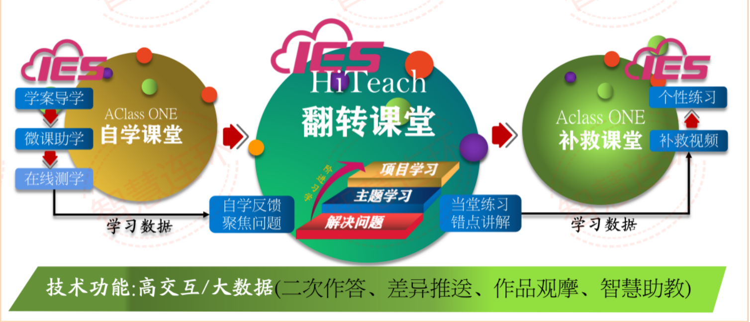 以學(xué)習(xí)中心教學(xué)理論為依據(jù),以IES云平臺(tái)為支撐,以教學(xué)大數(shù)據(jù)為驅(qū)動(dòng),根據(jù)知識(shí)的內(nèi)化原理建構(gòu)“三個(gè)課堂”——自學(xué)課堂、翻轉(zhuǎn)課堂、補(bǔ)救課堂,實(shí)現(xiàn)知識(shí)的三次內(nèi)化與教學(xué)的兩個(gè)翻轉(zhuǎn),促進(jìn)學(xué)生深度學(xué)習(xí)與創(chuàng)新能力發(fā)展。