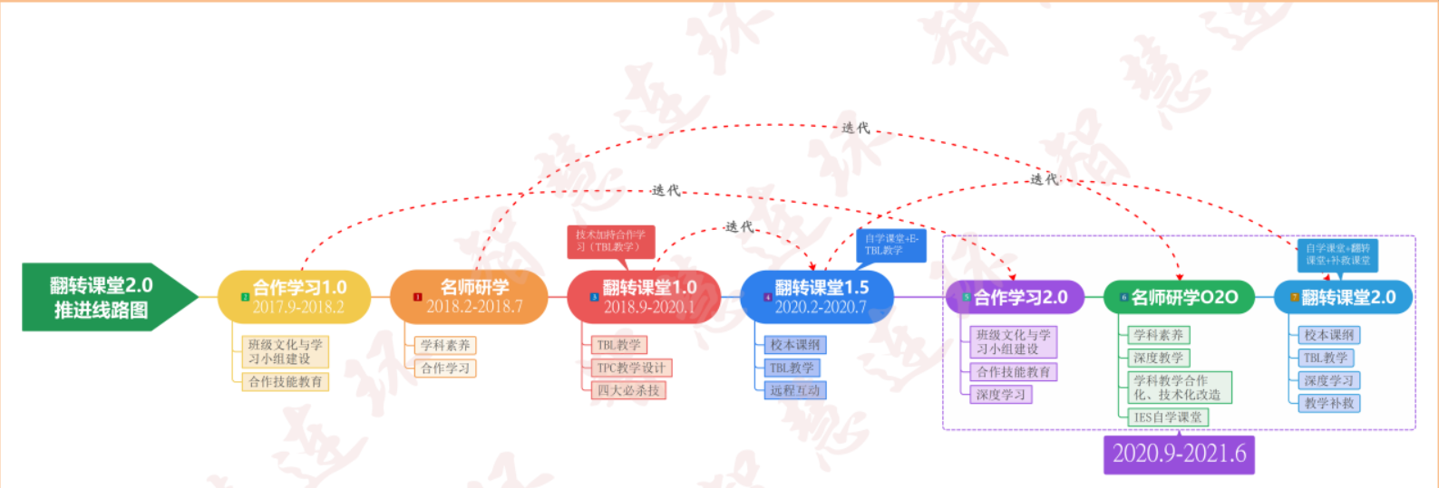 從這個(gè)歷程中,我們可以看到學(xué)校是如何選擇翻轉(zhuǎn)課堂2.0的突破口與階段性推進(jìn)項(xiàng)目的。
