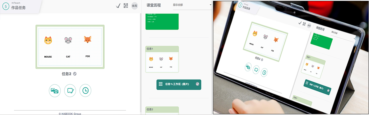 教師端HiTeach同步任務(wù)學(xué)習(xí)評(píng)量模組是數(shù)字化多元評(píng)量任務(wù)功能(模組畫面如圖5)。請(qǐng)學(xué)生根據(jù)任務(wù)要求(例如學(xué)習(xí)單),完成學(xué)習(xí)評(píng)量任務(wù)。任務(wù)類型可分為圖片、聲音、多媒體檔案等多元型態(tài),通過任務(wù)分類,可以協(xié)助教師快速匯整、比較、分析全班完成評(píng)量任務(wù)的內(nèi)容。