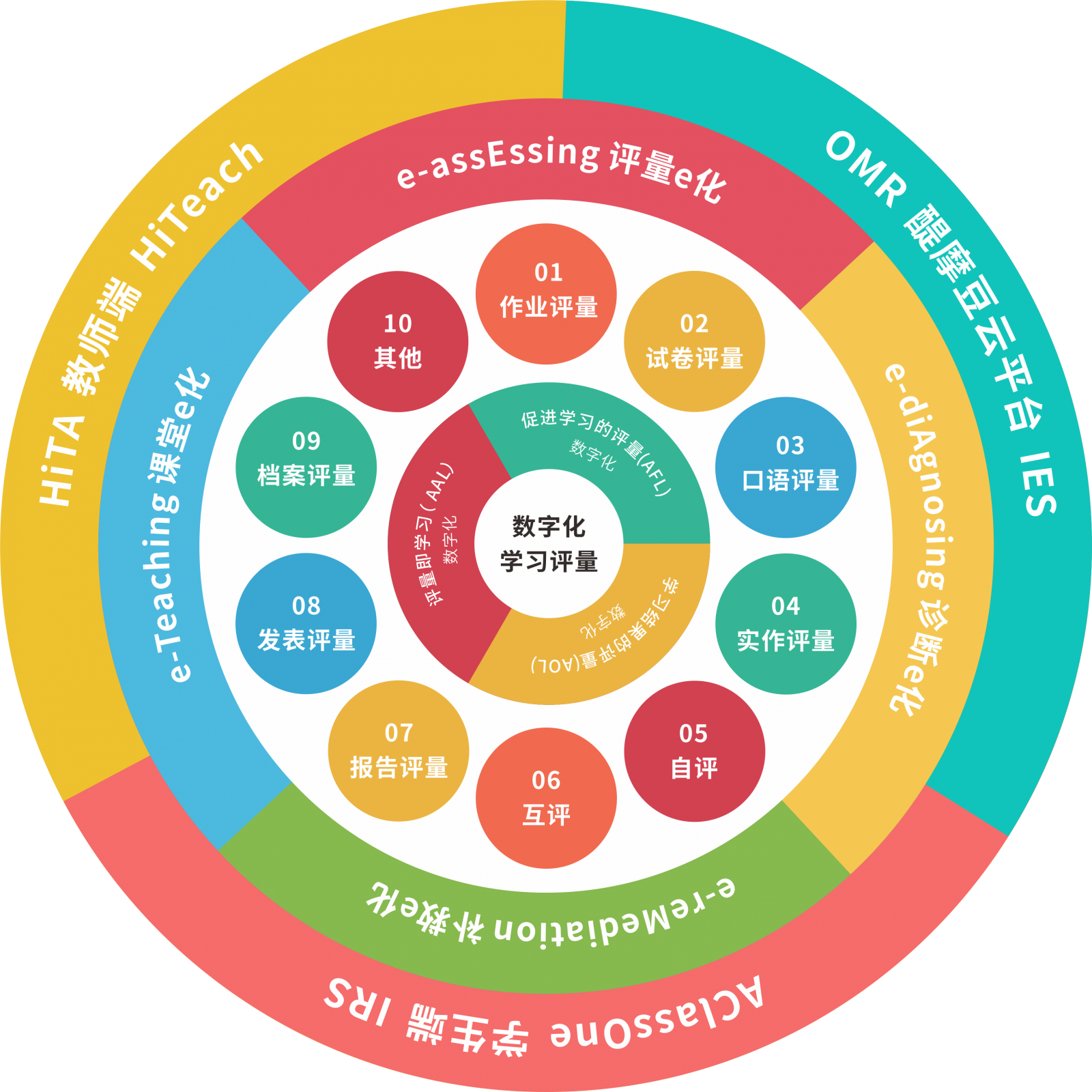 依據(jù)促進(jìn)學(xué)習(xí)的評(píng)量(AFL)、學(xué)習(xí)結(jié)果的評(píng)量(AOL)、評(píng)量即學(xué)習(xí)(AAL)三種類型評(píng)量目的,以及試卷評(píng)量、作業(yè)評(píng)量、口試評(píng)量、實(shí)作評(píng)量、自評(píng)、互評(píng)、報(bào)告評(píng)量、發(fā)表評(píng)量、檔案評(píng)量等多元評(píng)量工具需求,醍摩豆系統(tǒng)之學(xué)習(xí)評(píng)量模組可分為教師端、學(xué)生端和云平臺(tái)IES等三大部分,來完成數(shù)字化學(xué)評(píng)量的設(shè)計(jì)與應(yīng)用,主要功能列舉如下: