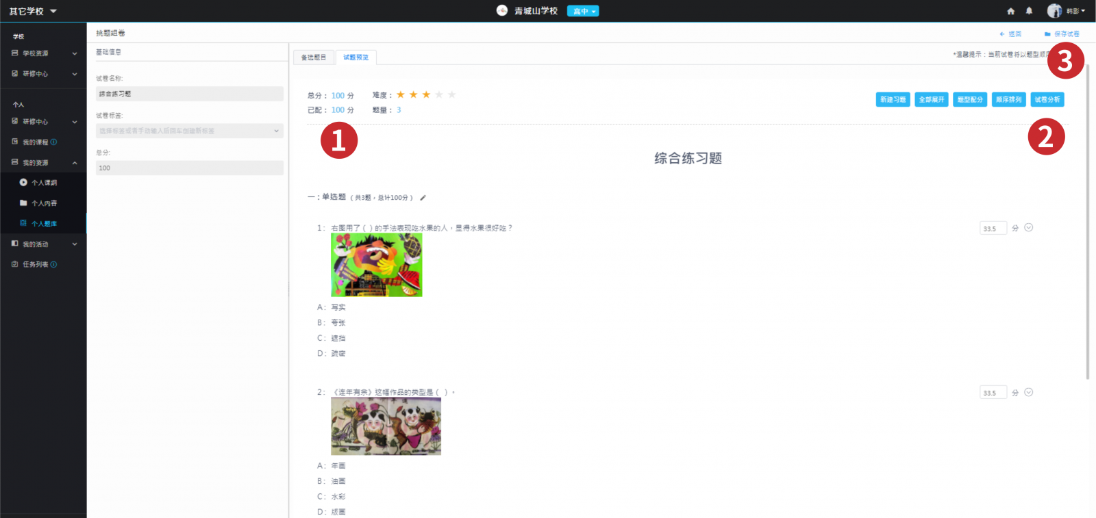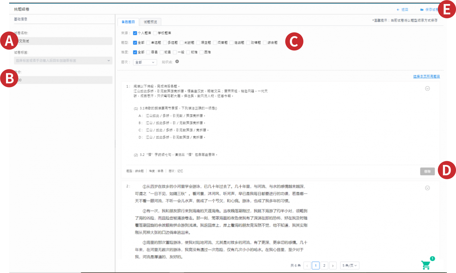 上建立豐富試題庫之后,就能便利地組合出各類評量需求的試卷。