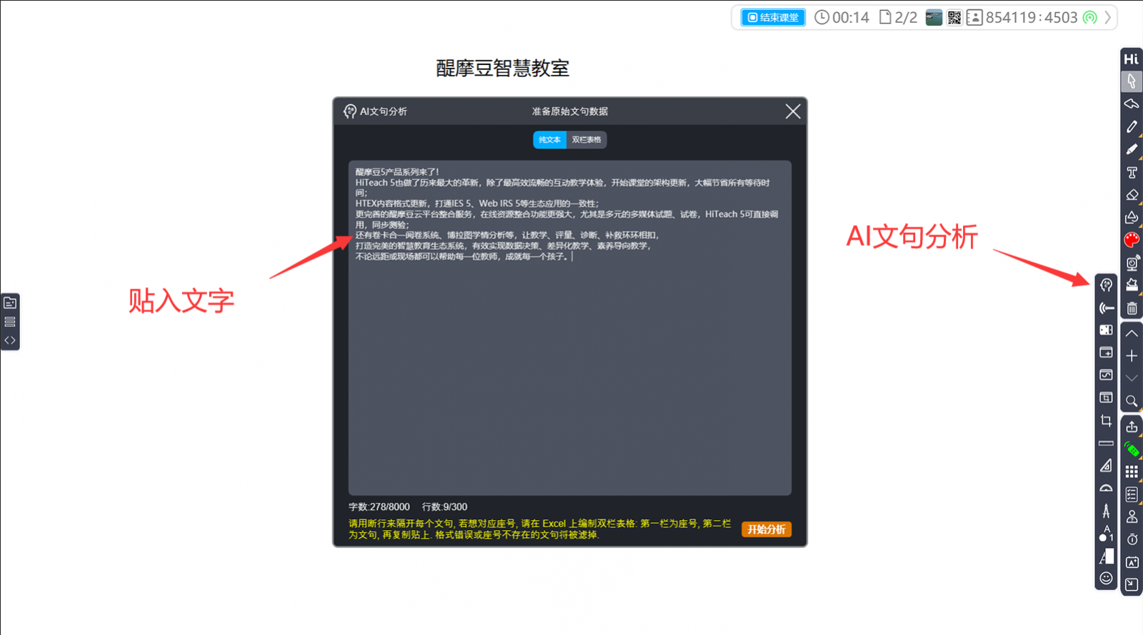 HiTeach 928公益版授權(quán)如何應(yīng)用AI輔助文句分析功能