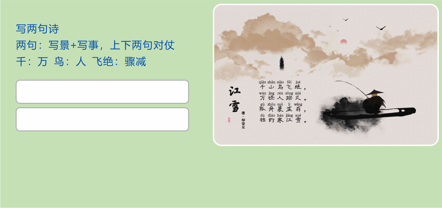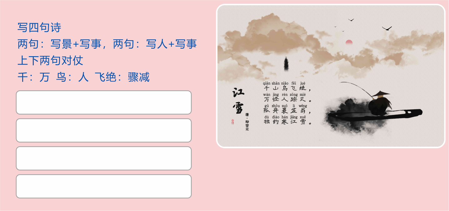 難度不同,設(shè)計(jì)示例二:五言絕句創(chuàng)作_Covid 19疫情側(cè)寫(低難度、中難度、高難度),根據(jù)學(xué)生端的選擇推送難度不同的任務(wù),如圖8、9、10。