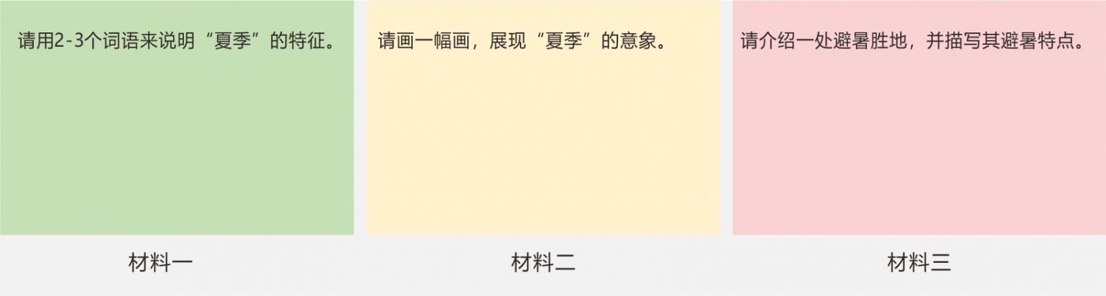 材料不同,設(shè)計(jì)示例二:夏季情境,根據(jù)學(xué)生端的選擇推送材料不同的任務(wù),如圖17。
