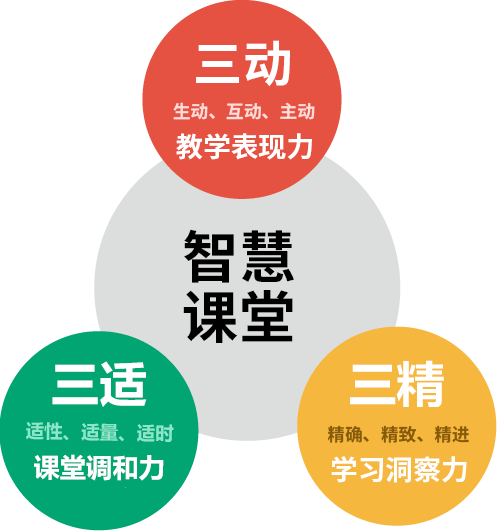 DIA模型是應(yīng)用TPCK智慧教學(xué)模式,創(chuàng)造智慧課堂的三項教學(xué)能力,也就是生動、互動、主動的教學(xué)展現(xiàn)力(Demonstration of teaching),精確、精致、精進的學(xué)習(xí)洞察力(Insight of Learning),以及 適性、適量、適時的課堂調(diào)和力(Adaptability of lecture)。 DIA模型是智慧教師的實戰(zhàn)能力,是教師與學(xué)生共同成長的理想情境。上述之「生動」是指「創(chuàng)設(shè)生動的學(xué)習(xí)情境,引發(fā)學(xué)生的學(xué)習(xí)動機」,「互動」是指「建立師生之間相互連結(jié)、反饋的學(xué)習(xí)生態(tài)」,「主動」是指「激發(fā)學(xué)生主動探索、積極投入學(xué)習(xí)的心態(tài)」;「精確」是指「隨時精確地掌握學(xué)生的學(xué)習(xí)狀態(tài)」,「精致」是指「根據(jù)學(xué)習(xí)狀態(tài)精致地安排教學(xué)活動」,「精進」是指「根據(jù)學(xué)習(xí)歷程信息精進教與學(xué)」;「適性」是指「設(shè)計符合學(xué)生性向的學(xué)習(xí)方式」,「適量」是指「給予適合學(xué)生能力的學(xué)習(xí)份量」,「適時」是指「安排的學(xué)習(xí)時機符合學(xué)生的發(fā)展階段」,如圖4。