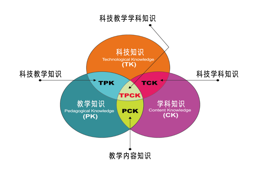 Archambault 與 Crippe 提出教學(xué)學(xué)科知識(PCK),包括如何讓一個主 題更難或更容易被學(xué)會,以及關(guān)于那些常被學(xué)生帶入課堂的誤解與先入為主的認知。 Niess 認為科技學(xué)科知識(TCK)是指如何運用科技創(chuàng)新教學(xué)的相關(guān)知識。例如,數(shù)位動畫讓學(xué)生能夠更加理解化學(xué)反應(yīng)發(fā)生時電子與原子交互作用的過程。科技教學(xué)知識(TPK)指的是科技能做為不同教學(xué)方法的推動。例如:在線協(xié)作工具,能幫助位居不同地方的學(xué)習(xí)者之間的交流學(xué)習(xí)(引自 Wikipedia, 2016b)。
