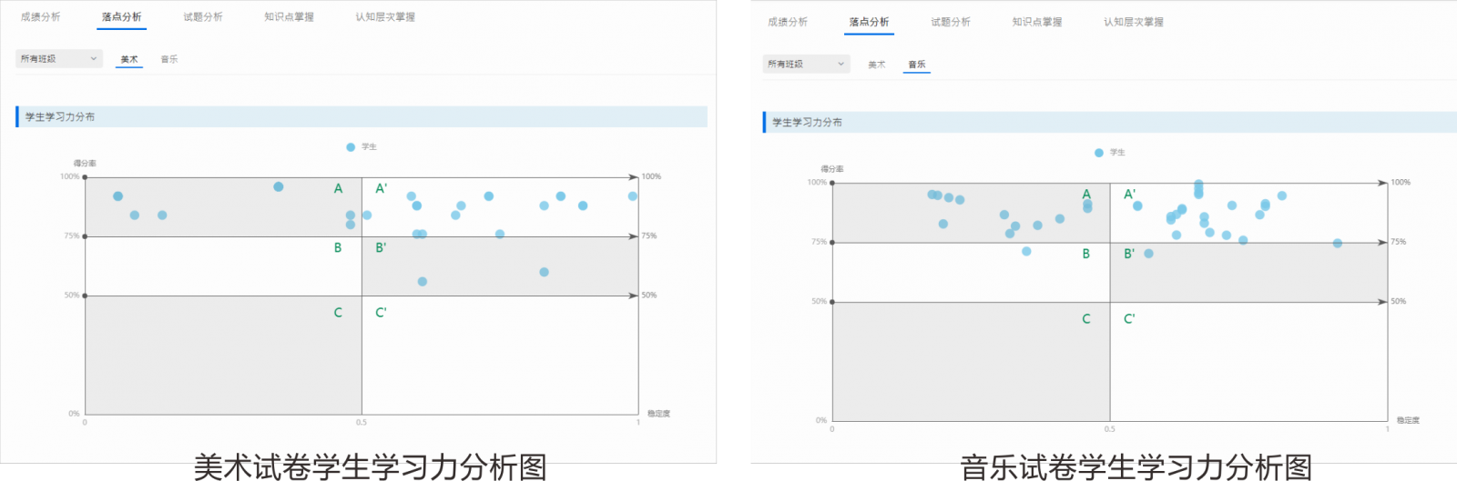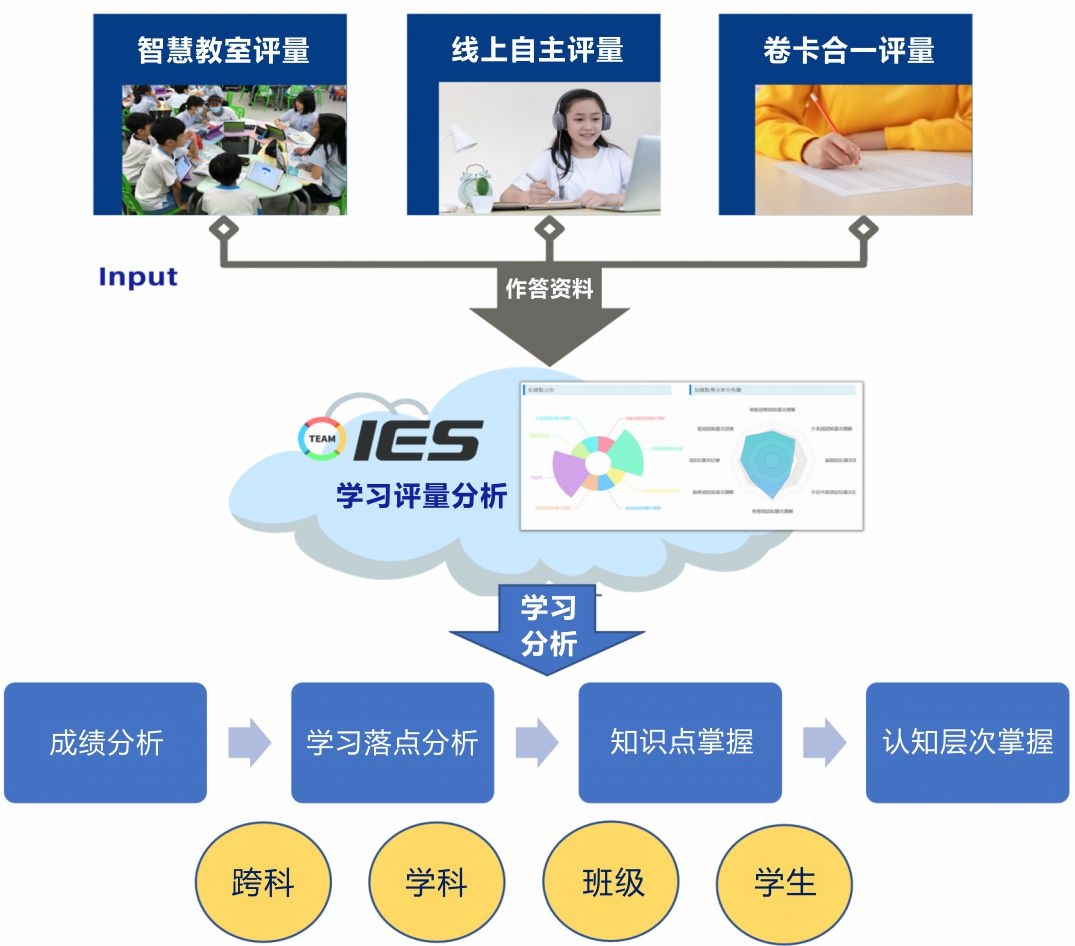 學(xué)習(xí)評(píng)量數(shù)字化可以生成大量評(píng)量數(shù)據(jù),再利用學(xué)習(xí)分析工具,包括成績分析、落點(diǎn)分析、知識(shí)點(diǎn)掌握和認(rèn)知層次掌握等工具,分別對(duì)跨科、學(xué)科、班級(jí)、學(xué)生之學(xué)習(xí)情況(學(xué)情),進(jìn)行精準(zhǔn)、高效的學(xué)習(xí)情況(學(xué)情)分析。