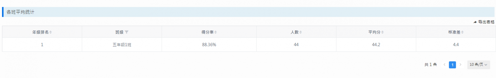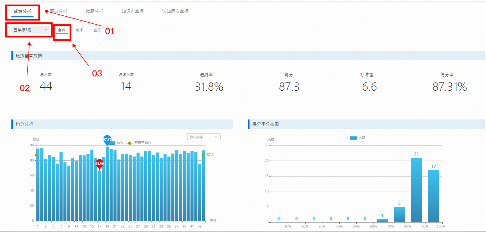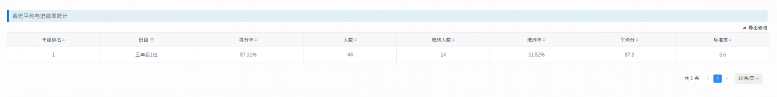 在成績分析頁面,點(diǎn)選單一班級(jí)標(biāo)簽