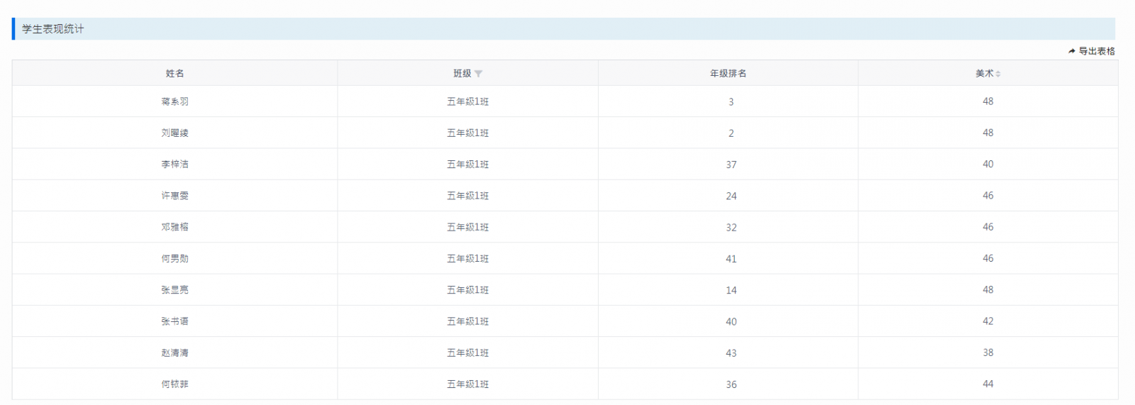 5:學(xué)生表現(xiàn)統(tǒng)計(jì)表