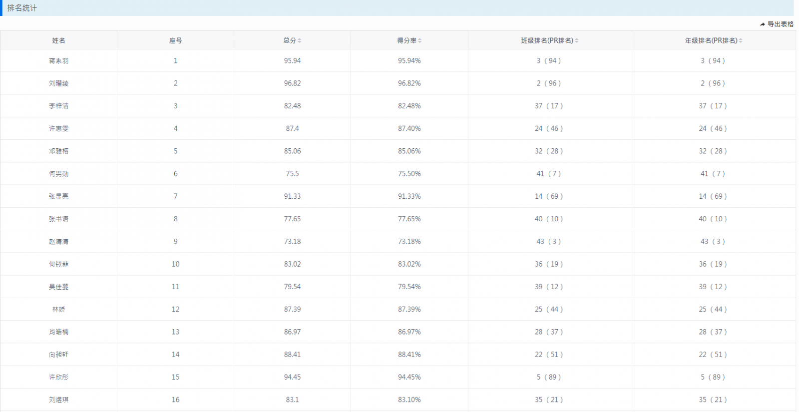 下方緊接著顯示學(xué)生穩(wěn)定度統(tǒng)計(jì)表,如圖