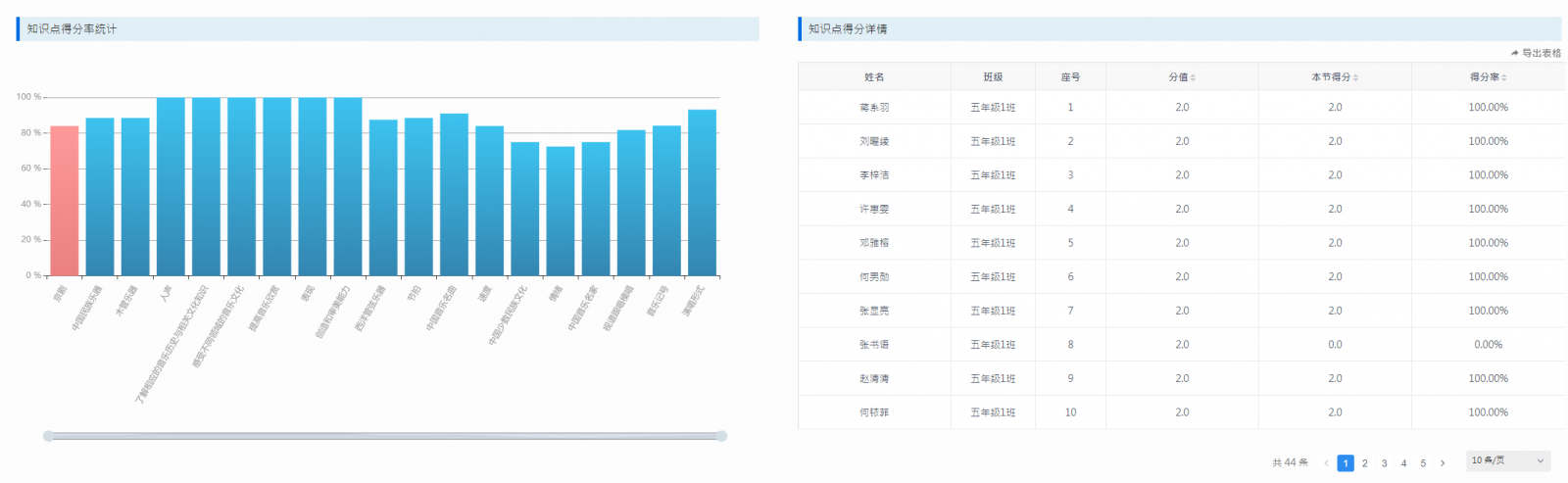 17:知識(shí)點(diǎn)得分率統(tǒng)計(jì)與知識(shí)點(diǎn)得分詳情表