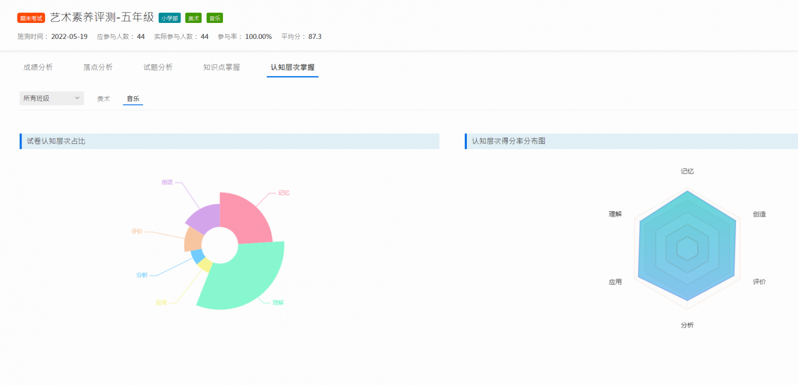 標(biāo)簽,再選擇班級(jí)、學(xué)科,就會(huì)顯示該學(xué)科的認(rèn)知層次掌握頁面