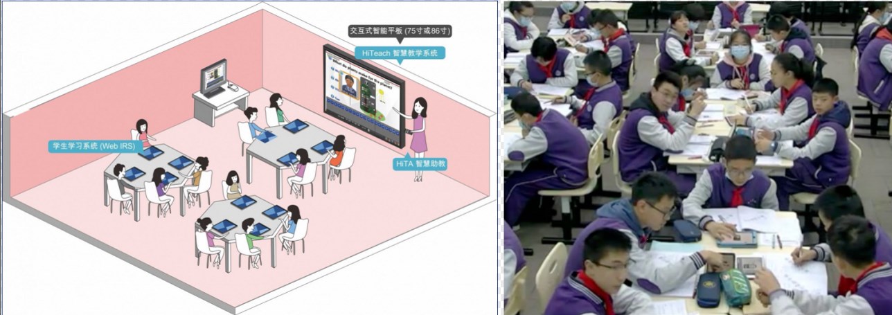 圖7: 平板智慧教室示意圖 圖8:西川實(shí)驗(yàn)學(xué)校班級平板智慧教室 貳、技術(shù)賦能變革課堂的提問數(shù)據(jù)