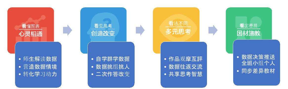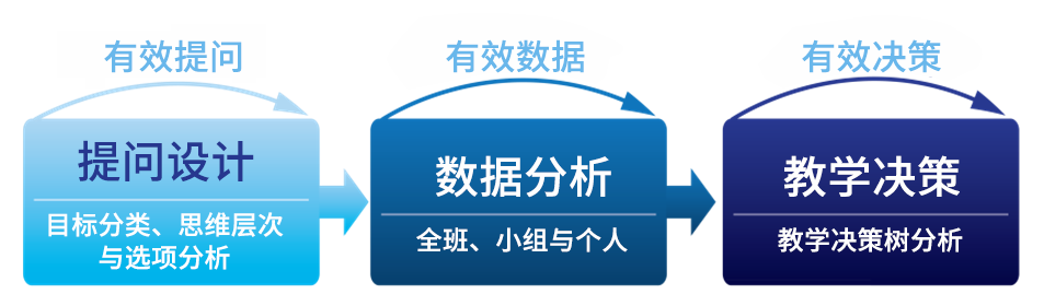 在智慧教室中,每一個(gè)學(xué)生都有智慧型終端,教師在課堂上,可同時(shí)接收到全班學(xué)生的反饋數(shù)據(jù),并能立即分類、統(tǒng)計(jì)、分析全班、小組和個(gè)人的數(shù)據(jù)狀態(tài)。這是技術(shù)賦能課堂「提問設(shè)計(jì)→數(shù)據(jù)分析→教學(xué)決策」循環(huán)的特點(diǎn)與優(yōu)勢。