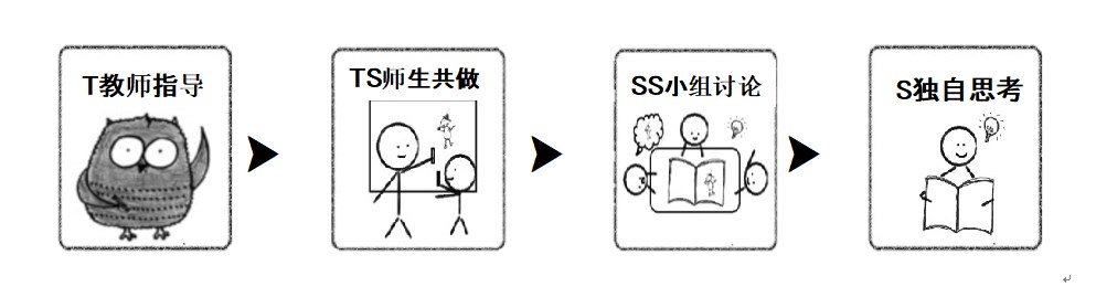 在教師引導(dǎo)下,實(shí)現(xiàn)以生為本,以學(xué)為主的學(xué)習(xí)生態(tài),啟發(fā)學(xué)生學(xué)習(xí)境界,由被動學(xué)習(xí)、互動學(xué)習(xí)、主動學(xué)習(xí),邁向自主學(xué)習(xí),或如陳欣希教授團(tuán)隊(duì)輔導(dǎo)教師專業(yè)社群成長的共同備課理念,從教師指導(dǎo)(T) >師生共做(TS) ->小組討論(SS) ->獨(dú)自思考(S)(圖19)。