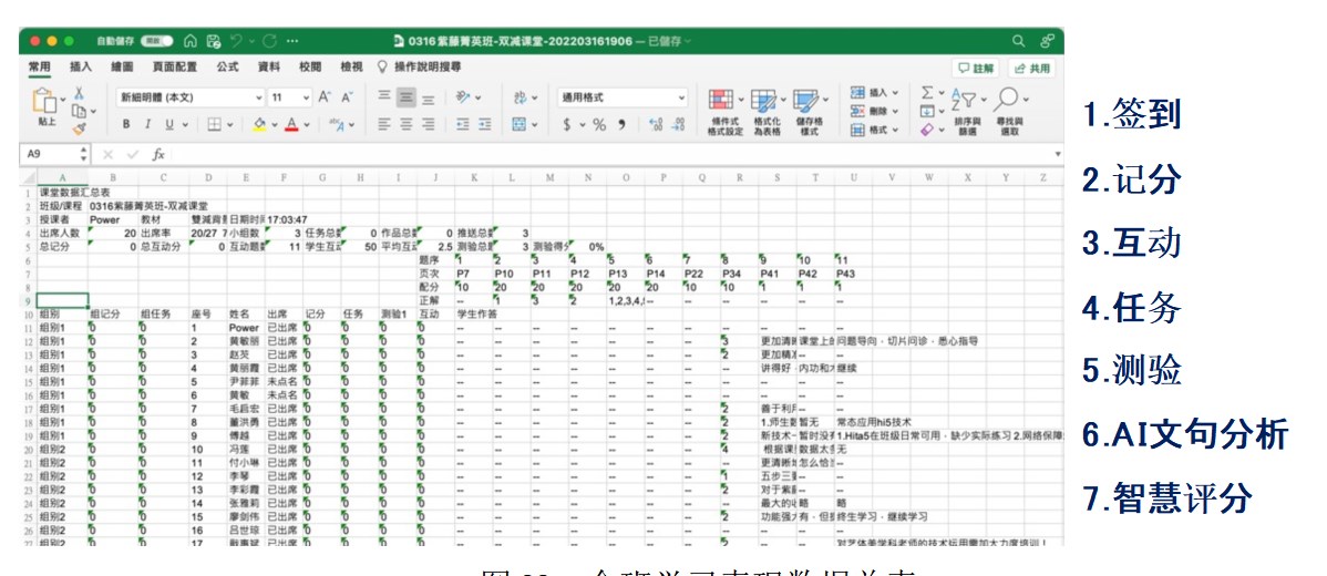 圖23:全班學(xué)習(xí)表現(xiàn)數(shù)據(jù)總表 肆、技術(shù)賦能變革課堂的決策情境