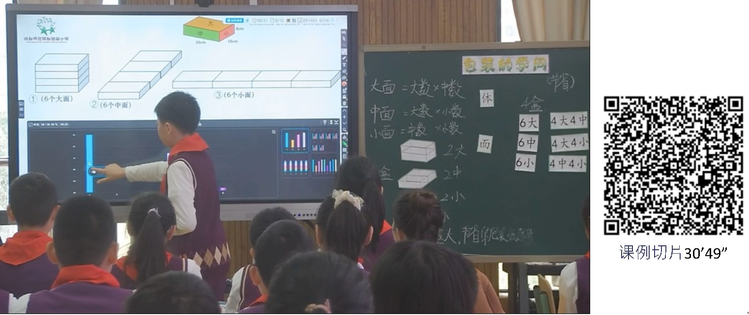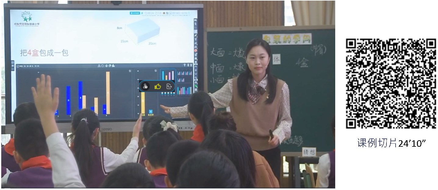 「第五屆課堂變革與教學(xué)領(lǐng)導(dǎo)力提升」專題研討會(2023.3.23-24)小學(xué)數(shù)學(xué)場展示課例:成都市成都師范銀都紫藤小學(xué)傅越老師的五年級數(shù)學(xué)《包裝的學(xué)問:長方體的認(rèn)識》為例,課例切片30’49”教師邀請學(xué)生上臺說一說統(tǒng)計(jì)圖代表的意義(圖26)。
