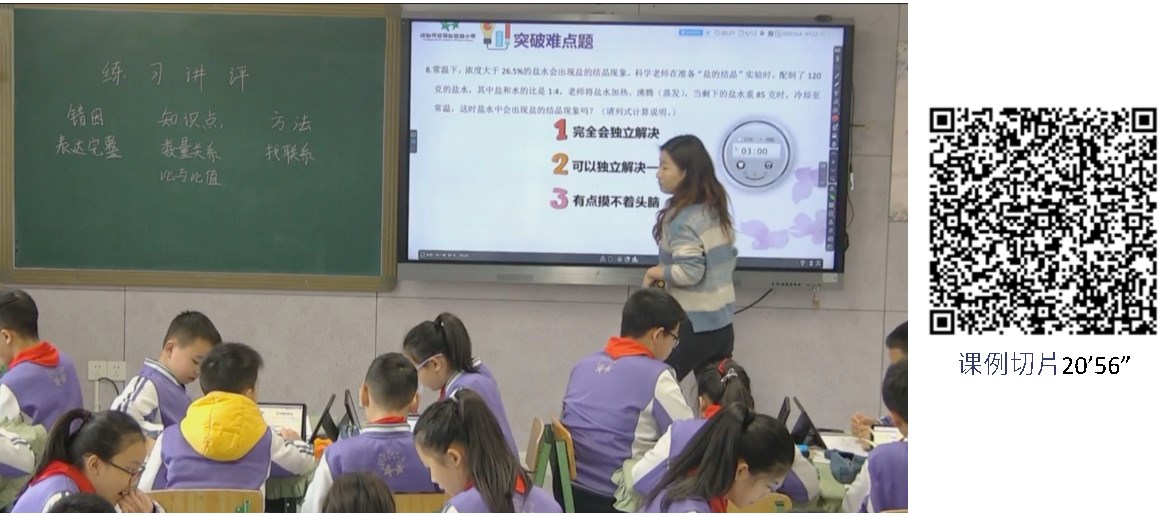 圖33是紫藤小學(xué)趙芡老師的六年級數(shù)學(xué)《數(shù)與代數(shù)》練習(xí)評講課的同步差異化課例,切片20’56” 趙老師根據(jù)學(xué)生的自主挑戰(zhàn)意愿,推送差異化的提示資料(錦囊)。有自信的同學(xué)不需要提示,還沒有信心的同學(xué)也會收到學(xué)習(xí)任務(wù)指引。