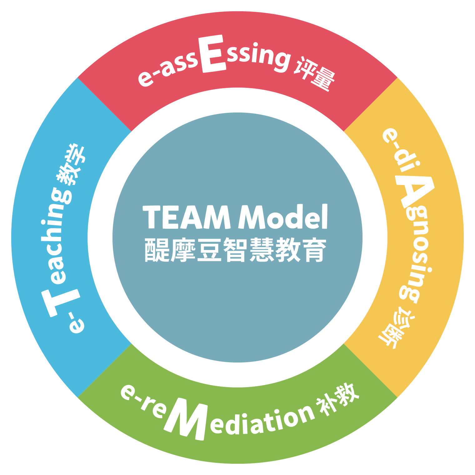 “TEAM”代表教學(xué)、評(píng)量、診斷、補(bǔ)救等四大e化工程,貫穿教學(xué)前、中、后的學(xué)習(xí)歷程,關(guān)注每位孩子學(xué)習(xí)。通過醍摩豆(TEAM Model)智慧教室可以更容易實(shí)現(xiàn)以學(xué)生為中心、合作學(xué)習(xí)、TBL、PBL、一對(duì)一教學(xué)等現(xiàn)代教育理念。