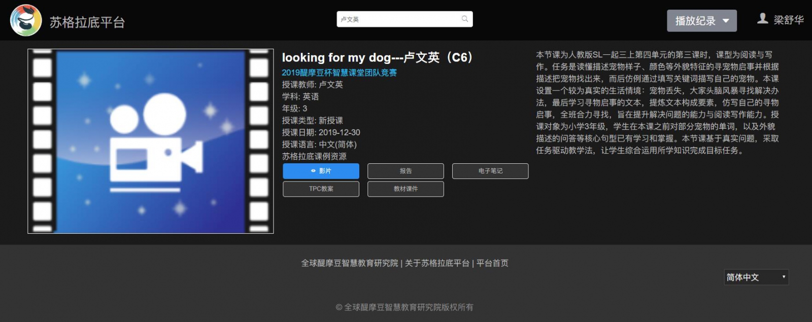 4. 2020年5月課例《Looking for my dog》中央電教館新媒體新技術(shù)賽課典藏課例。
