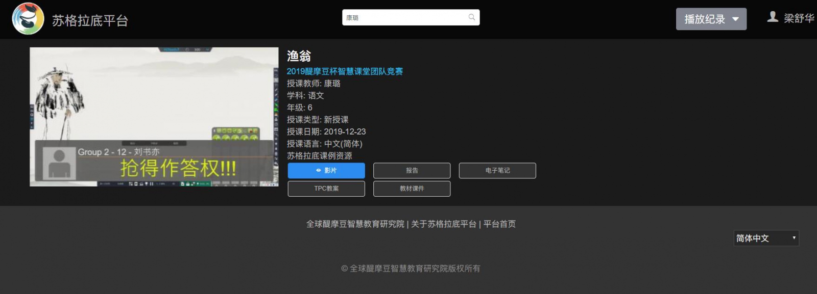 3.參加智慧教室有四年多,前后參加后兩次賽課。2018年《永生的眼睛》獲得全球醍摩豆賽課二等獎,2019年《漁翁》在“醍摩豆智慧課堂創(chuàng)新賽”獲得特等獎。