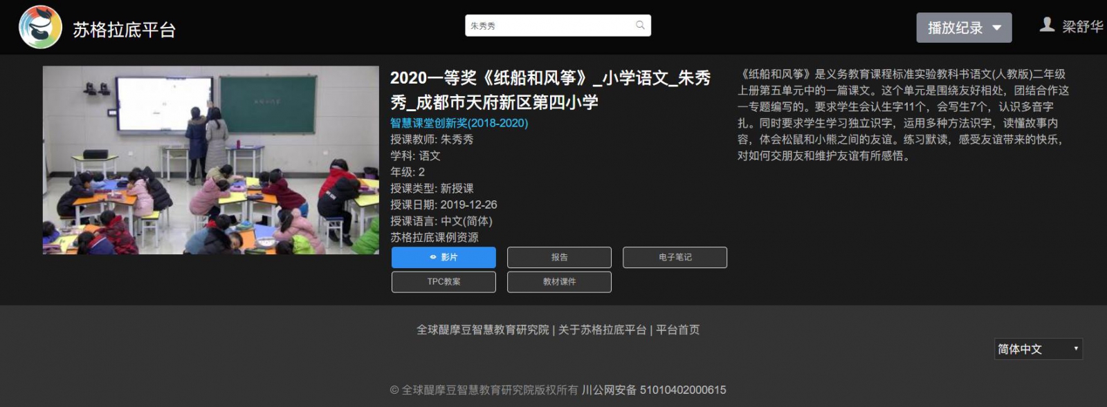 朱秀秀老師從事教育事業(yè)五年,在教育教學(xué)中不斷探索和學(xué)習(xí)。她認(rèn)為要在充分尊重教育規(guī)律和人發(fā)展的規(guī)律的基礎(chǔ)上,實(shí)現(xiàn)語文課程的工具性和人文性,讓孩子們學(xué)習(xí)祖國語言文字,吸收古今中外優(yōu)秀文化。因此,朱秀秀老師不但注重學(xué)生對語言文字的掌握和運(yùn)用,也注重學(xué)生在課堂的情感體驗(yàn)和審美提升,通過智慧教育在語文和技術(shù)之間相互融合,激發(fā)學(xué)生的學(xué)習(xí)興趣,運(yùn)用不同的現(xiàn)代教育技術(shù)手段輔助實(shí)現(xiàn)語文課程的工具性與人文性。