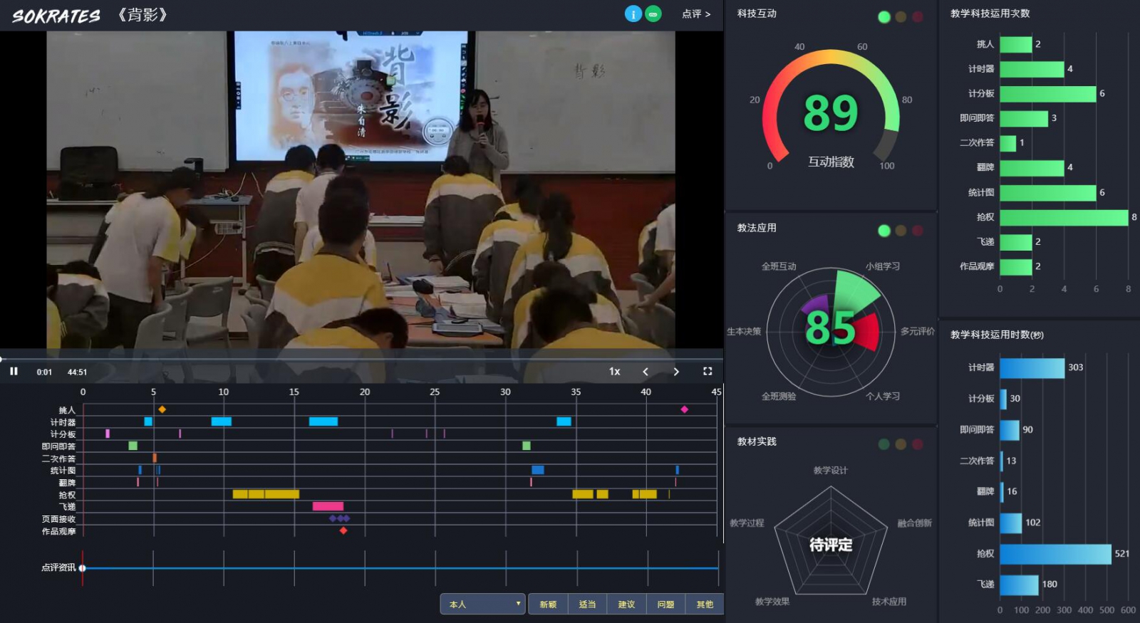 老師采用TBL團(tuán)隊(duì)合作學(xué)習(xí)模式,利用小組捆綁評價(jià)的機(jī)制來激發(fā)學(xué)生閱讀興趣,促進(jìn)團(tuán)隊(duì)合作共進(jìn)。課堂的各個(gè)環(huán)節(jié)層層遞進(jìn)、環(huán)環(huán)相扣,都需要小組共同探討來完成,最后采用選擇器選擇的方式展出觀點(diǎn)的不同、在合作交流探討中深入文章關(guān)注重要語句理解文章,再次表達(dá)觀點(diǎn),通過數(shù)據(jù)體現(xiàn)思維的動(dòng)態(tài),對文中父子間情感的理解達(dá)到更深層次。