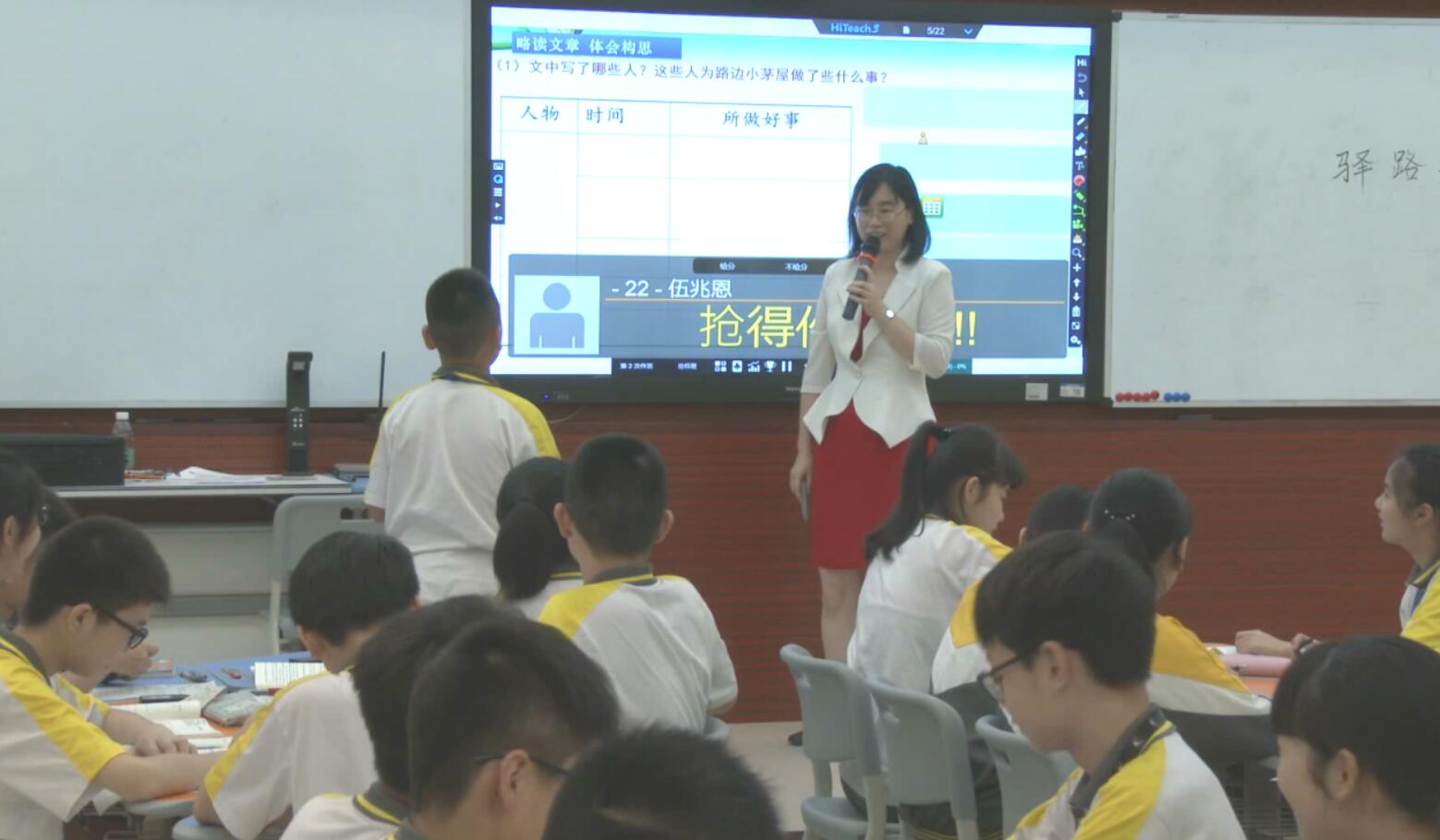 張妍瑜老師在教育教學(xué)過程中堅(jiān)持以生為本,重視啟發(fā)學(xué)生閱讀思維,提高學(xué)生語文核心素養(yǎng)。在教學(xué)中積極開展小組合作互動(dòng)課堂,探索智慧課室與語文學(xué)科的有機(jī)融合,借助團(tuán)隊(duì)合作學(xué)習(xí)模式,利用數(shù)據(jù)即時(shí)反饋系統(tǒng)了解學(xué)生的閱讀狀態(tài)。以學(xué)定教,挖掘文本有價(jià)值的閱讀問題,以問題導(dǎo)向,任務(wù)驅(qū)動(dòng)的教學(xué)方式讓學(xué)生主動(dòng)參與課堂,達(dá)到師生互動(dòng),生生交流,合作探究,共同進(jìn)步目的。