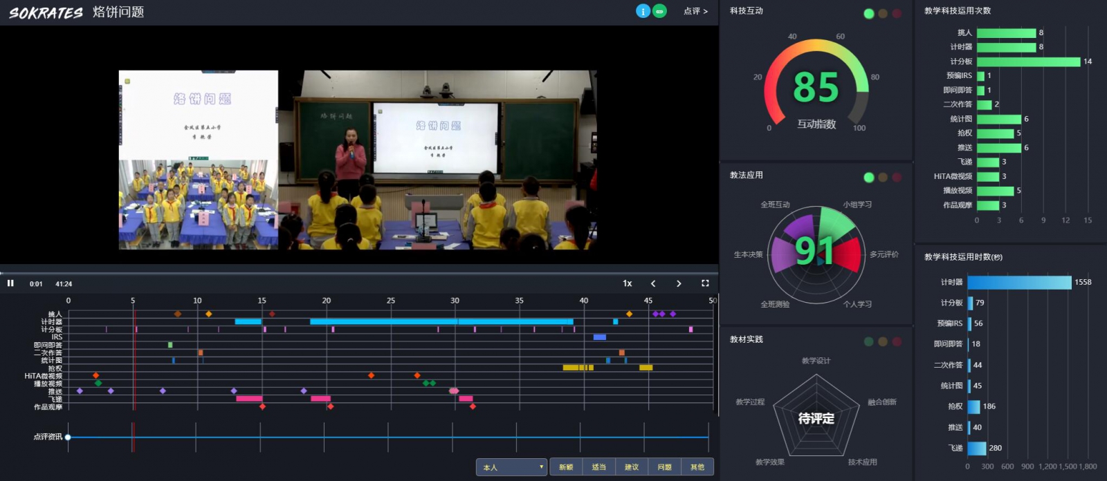 3.數(shù)據(jù)決策與因材施教。探究3張餅的烙法是本節(jié)課的難點,在展示交流時,我將學生的展示過程實時圖像傳輸,再進行及時回放,幫助學生理解3張餅用時9分鐘比12分鐘少的秘密在于鍋里始終有兩張餅,縮短了烙餅時間,收到了非常好的效果。在練習環(huán)節(jié),“給38名同學每個人烙一張餅,最少需要多少分鐘?”這道題學生作答后正確率是33%,低于50%,我采用了智慧挑人,隨機抽取答對的學生并進行講解,又隨機抽取答錯的學生,讓他說說錯誤原因,真正做到因材施教。