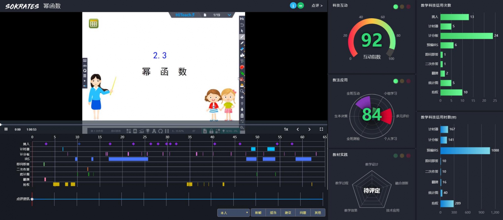 整節(jié)課通過(guò)回顧---思考---總結(jié)---應(yīng)用等環(huán)節(jié),模式清晰,在智慧教室系統(tǒng)的支持下智能高效。實(shí)現(xiàn)了學(xué)生為本的理念,加強(qiáng)關(guān)注每一位學(xué)生的學(xué)習(xí)狀態(tài)與學(xué)習(xí)成效。并采用TBL團(tuán)隊(duì)合作學(xué)習(xí)模式,引導(dǎo)教學(xué),促進(jìn)學(xué)生思考、小組合作。使學(xué)生深刻理解冪函數(shù)的性質(zhì)。