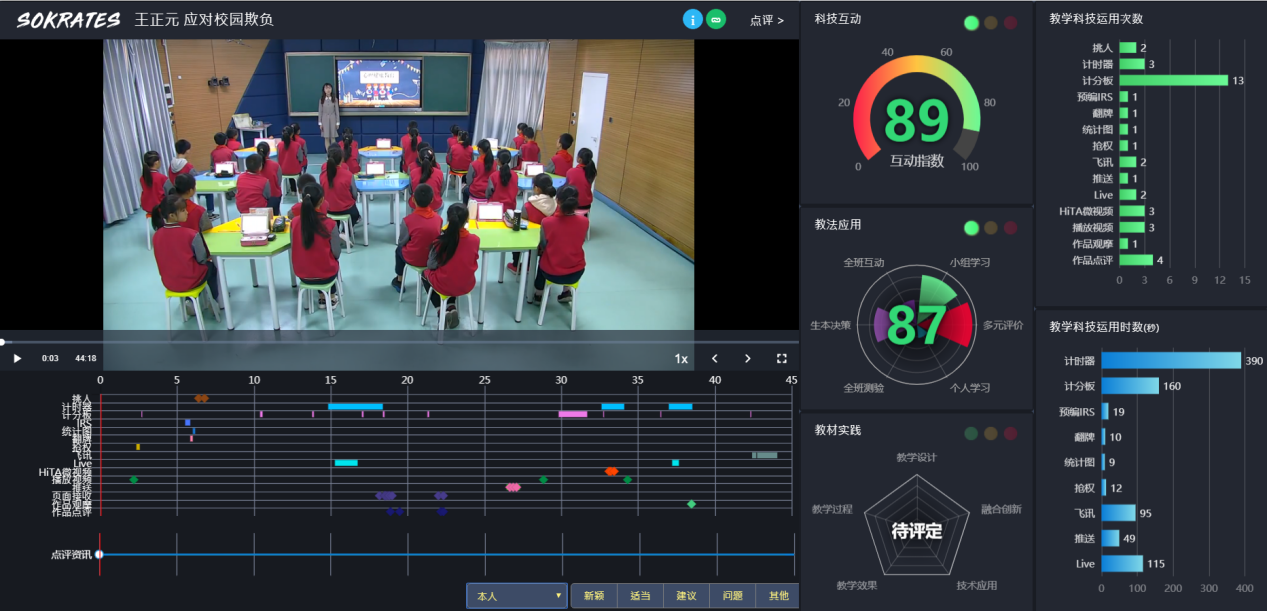 在智慧課堂中,王老師讓每個(gè)學(xué)生在學(xué)習(xí)中實(shí)操,借助學(xué)生平板、Hiteach手機(jī)端、電子白板輕松實(shí)現(xiàn)了學(xué)生全員參與,打造了個(gè)人優(yōu)質(zhì)高效課堂。王老師巧妙地借助智慧課堂陣地,營造了合作、探究、高效的課堂氛圍,學(xué)生參與課堂的積極性高漲,教學(xué)過程始終貫穿著師生互動、生生互動和人機(jī)互動。