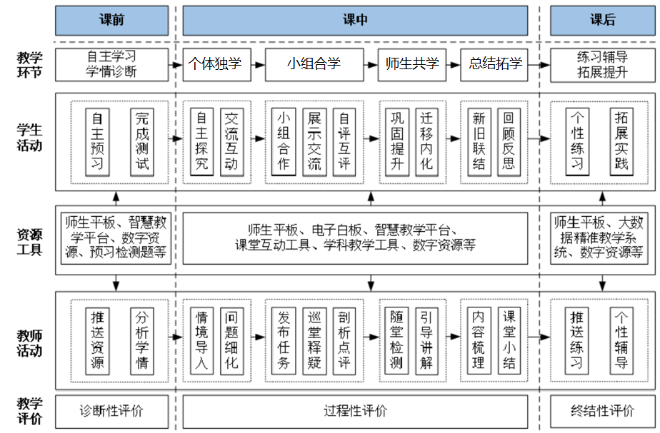 我校堅(jiān)持“以兒童為中心,以學(xué)習(xí)為中心”,深耕“樂群學(xué)堂”,積極探索智慧課堂教學(xué)模型。依托豐富、優(yōu)質(zhì)的數(shù)字技術(shù)資源,對教學(xué)環(huán)節(jié)、學(xué)生活動(dòng)、資源工具、教師活動(dòng)、教學(xué)評價(jià)進(jìn)行優(yōu)化,真正實(shí)現(xiàn)“教-學(xué)-評”一體化,從課前、課中、課后三個(gè)階段出發(fā),支持學(xué)生進(jìn)行自我導(dǎo)向?qū)W習(xí)、個(gè)性化學(xué)習(xí)和探究式學(xué)習(xí),呈現(xiàn)出教學(xué)決策數(shù)據(jù)化、評價(jià)反饋即時(shí)化、交流互動(dòng)立體化、資源推送智能化等顯著特征。