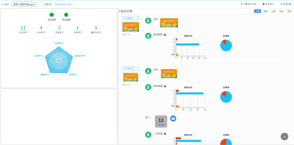 “互動(dòng)——生創(chuàng)”是一種新的課堂變革愿景,我校著力打造智慧教師,緊緊抓住智慧校園建設(shè),開展未來課堂的教學(xué)實(shí)踐和研究,結(jié)合“新課標(biāo)”背景,特組織青年教師智慧課堂應(yīng)用能力賽課。本輪賽課更加關(guān)注實(shí)現(xiàn)學(xué)生自主、個(gè)性化、差異化學(xué)習(xí),實(shí)現(xiàn)生生、師生、組間、人機(jī)的有效互動(dòng),有效提高了師生的數(shù)字素養(yǎng)。
