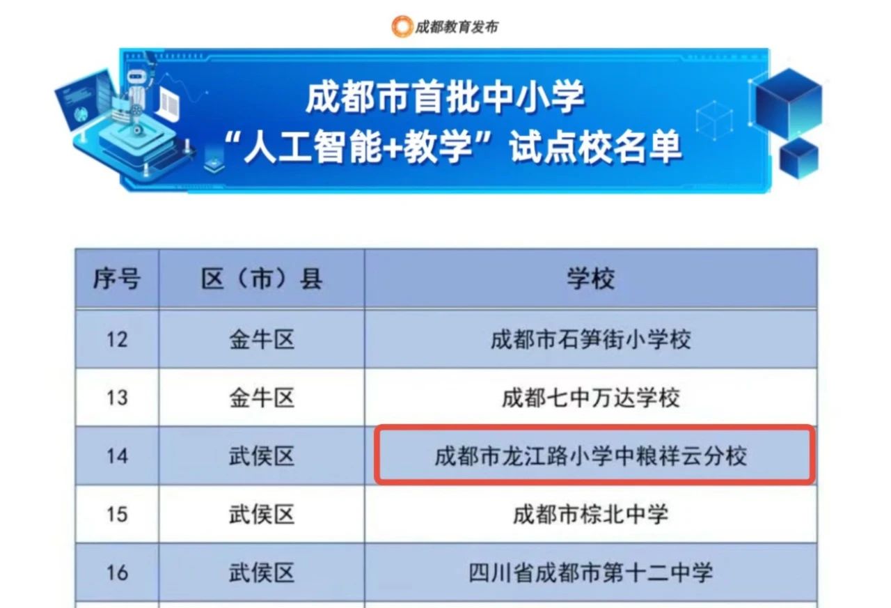 2025年初春,成都市龍江路小學(xué)中糧祥云分校成功入選成都市首批中小學(xué)“人工智能+教學(xué)”試點(diǎn)校,并受到央視、川觀新聞等多家媒體的關(guān)注與報道。截至目前,學(xué)校已榮獲教育部全國智慧教育優(yōu)秀案例獎、“央館人工智能課程”規(guī)?;瘧?yīng)用試點(diǎn)校、四川省首批智慧教育示范校(創(chuàng)建單位)、四川省“國家智慧教育平臺應(yīng)用”十大典型案例獎等270余項殊榮。