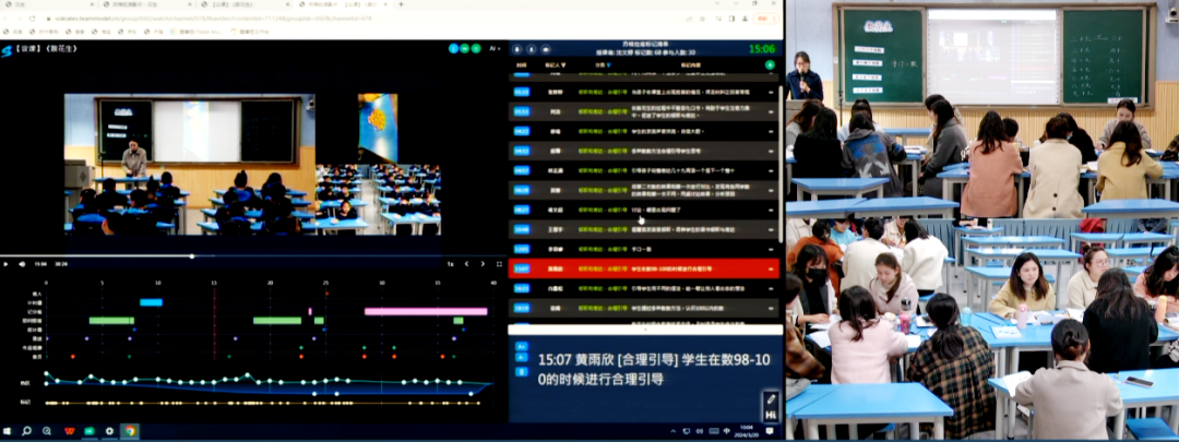 課堂上,教師們利用AI教研平臺(tái)實(shí)時(shí)觀課記錄,深度參與聽(tīng)課過(guò)程;課后,小組研討熱烈,交流匯報(bào)有序,有效解決了以往教研焦點(diǎn)分散的難題,人工智能的融合,讓教研真正成為教師專業(yè)成長(zhǎng)的高速引擎。