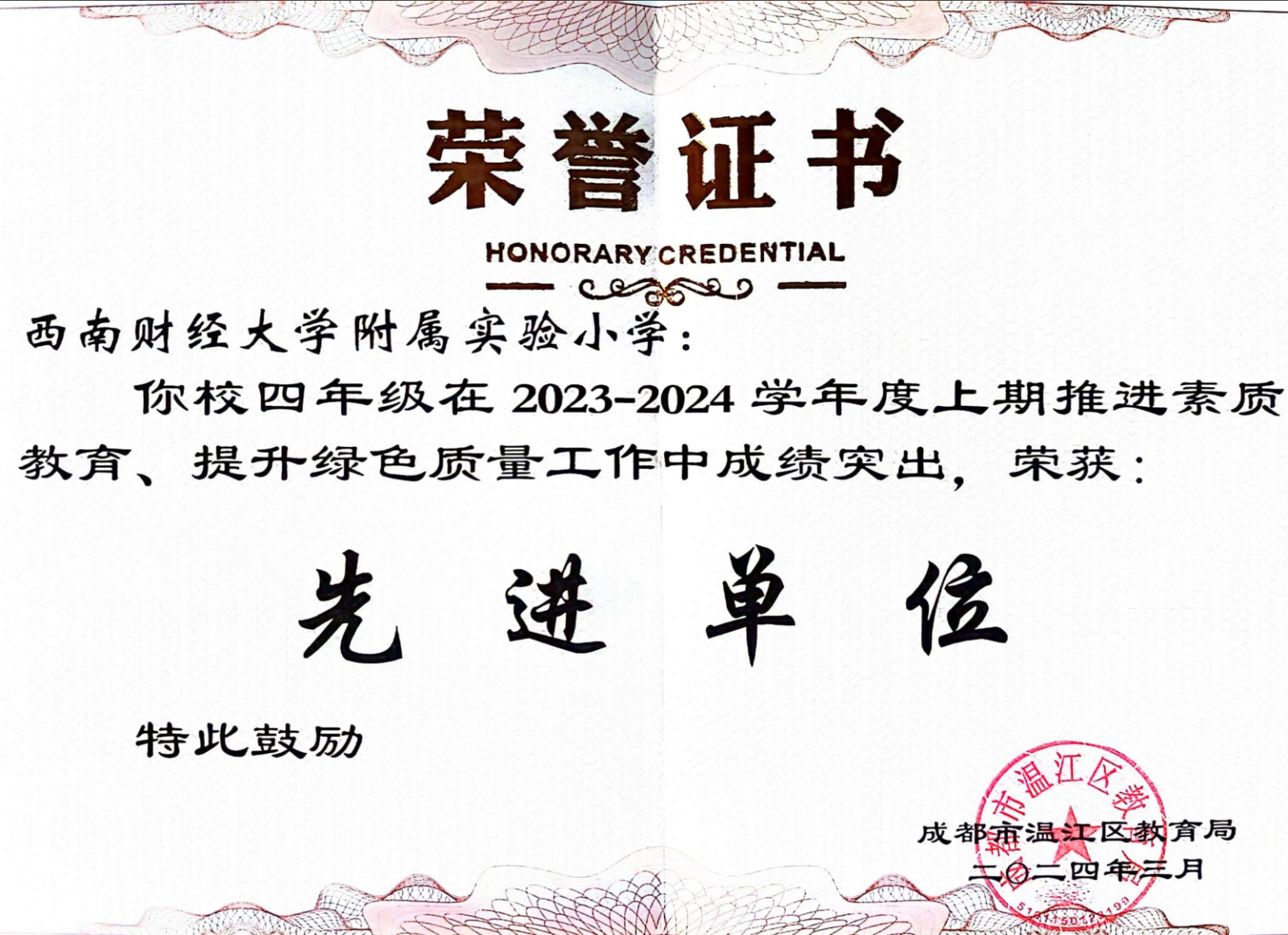 學(xué)生學(xué)業(yè)質(zhì)量水平位居全區(qū)同類學(xué)校前列,獲得區(qū)綠色質(zhì)量先進(jìn)單位;