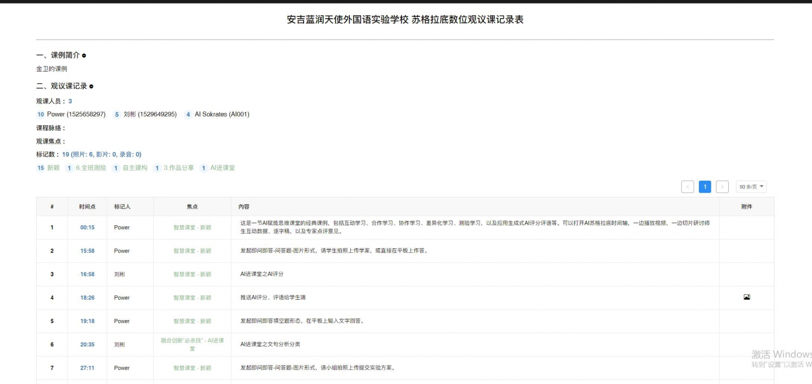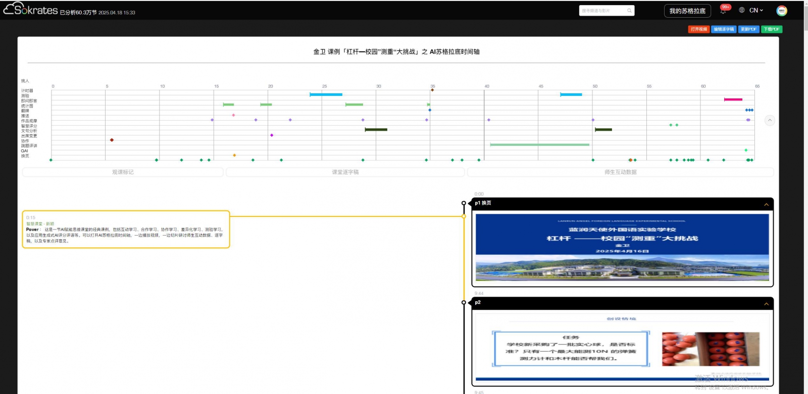 資訊(包括蘇格拉底影片、AI蘇格拉底時(shí)間軸、AI蘇格拉底課堂數(shù)據(jù)評(píng)估報(bào)告)如下: