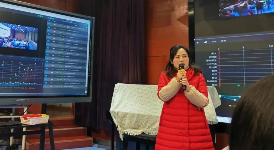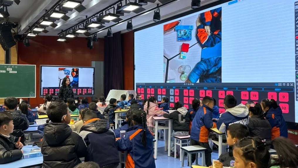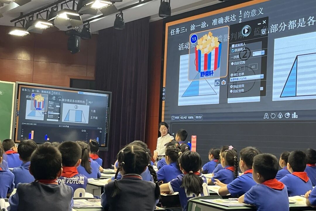 在課堂中,教師運(yùn)用HiTeach5人工智能授課平臺(tái)和反饋系統(tǒng),利用智慧測(cè)評(píng),促進(jìn)了全體學(xué)生的參與,讓學(xué)習(xí)真實(shí)發(fā)生,教師則利用AI數(shù)據(jù)的反饋,及時(shí)優(yōu)化或調(diào)整教學(xué)策略與內(nèi)容。“‘反饋器’是我們?cè)诮虒W(xué)中常常使用到的一個(gè)工具,傳統(tǒng)課堂中,學(xué)生回答問題時(shí),可能會(huì)跟隨聲音大的孩子,選擇同一個(gè)答案,但其實(shí)他真正選擇的是哪個(gè)選項(xiàng),教師也不知道。反饋器每位學(xué)生都有一個(gè),他們可以自主選擇答案,教師可以了解學(xué)生對(duì)這個(gè)知識(shí)點(diǎn)的掌握程度,進(jìn)而調(diào)整教學(xué)重點(diǎn)。”人工智能種子教師楊秋紅談到。
