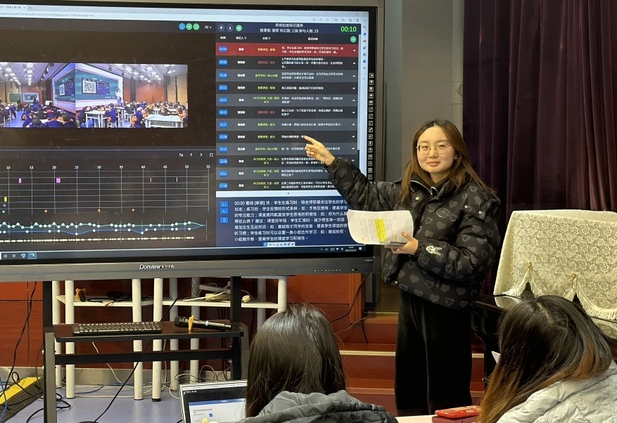 在教研中,為了更好地落實(shí)新課標(biāo)“教-學(xué)-研-評(píng)”一體化要求,學(xué)校在2023年底引入“蘇格拉底”評(píng)議課系統(tǒng)。該系統(tǒng)不僅改變了教師的教學(xué)方式和學(xué)生的學(xué)習(xí)方式,讓教學(xué)更加真實(shí)高效,還能運(yùn)用AI系統(tǒng)自動(dòng)生成數(shù)據(jù)。教師可以依據(jù)這些數(shù)據(jù)直觀了解自己的課堂類型,發(fā)現(xiàn)教學(xué)過程中存在的問題,為課后反思與提升提供有力依據(jù)。教研組可根據(jù)學(xué)科特點(diǎn)設(shè)定觀課標(biāo)準(zhǔn),觀課教師通過手機(jī)即可實(shí)現(xiàn)同步研討,課后還能根據(jù)自動(dòng)生成的研討數(shù)據(jù)(如碰撞點(diǎn)、聚焦問題和建議點(diǎn)等)進(jìn)行深入研磨,實(shí)現(xiàn)基于AI大數(shù)據(jù)的實(shí)證教研,促進(jìn)教師教學(xué)水平不斷提升,進(jìn)而提高教育教學(xué)質(zhì)量。此外,學(xué)校還建立了“蘇格拉底”智能資源庫(kù),將優(yōu)秀課例向全校教師推廣(公開課例可面向全國(guó)觀課),供大家學(xué)習(xí)研究。