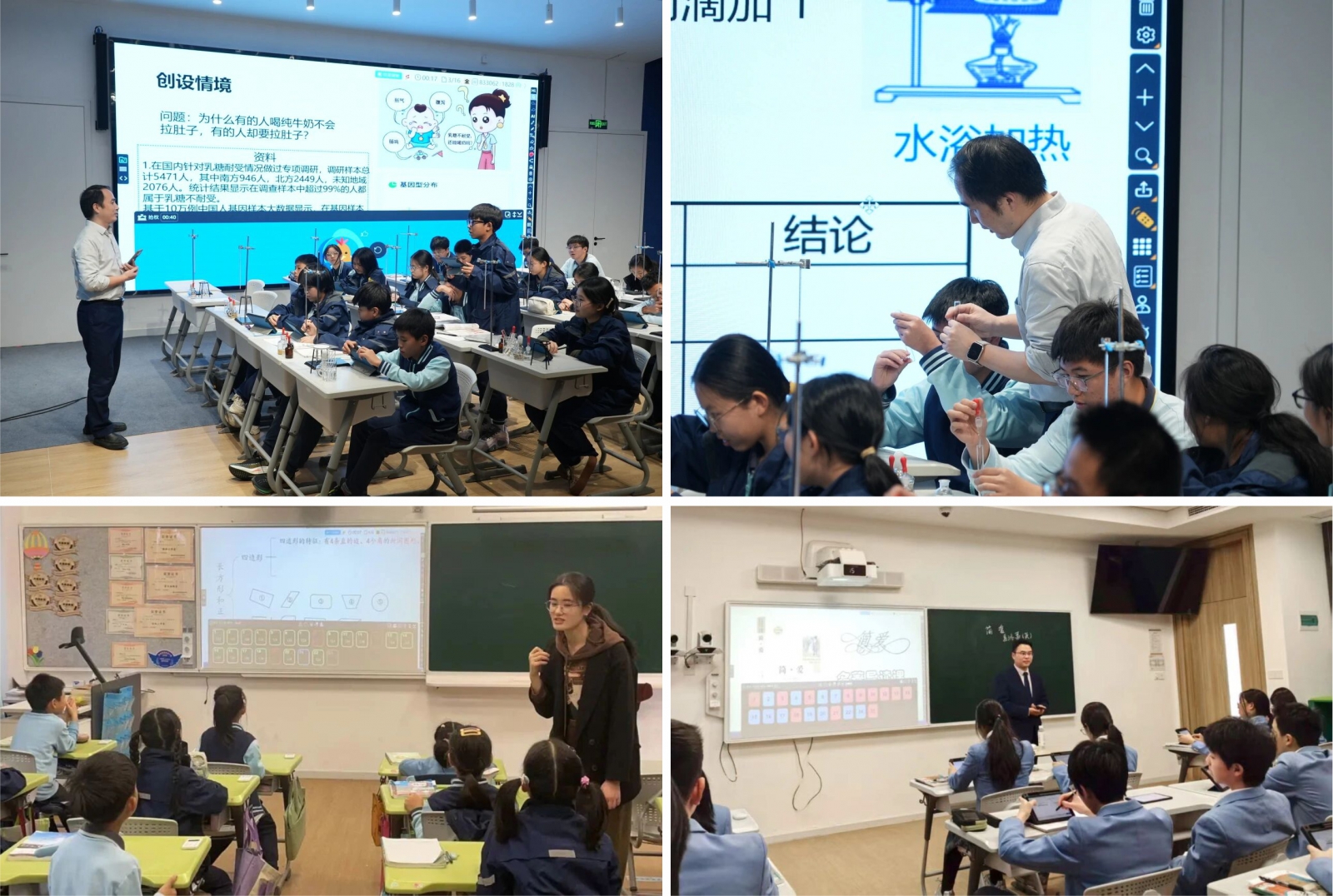 學(xué)校秉持先進(jìn)的教育數(shù)字化理念,認(rèn)為數(shù)字化技術(shù)是推動(dòng)教育創(chuàng)新、提升教學(xué)質(zhì)量、促進(jìn)學(xué)生個(gè)性化發(fā)展的重要手段。教育數(shù)字化不僅是將傳統(tǒng)教學(xué)內(nèi)容數(shù)字化,更是要構(gòu)建一個(gè)以學(xué)生為中心,融合教學(xué)、管理、評(píng)價(jià)等全方位的智慧教育生態(tài)系統(tǒng)。通過數(shù)字化技術(shù),打破時(shí)間和空間的限制,實(shí)現(xiàn)優(yōu)質(zhì)教育資源的共享,激發(fā)學(xué)生的學(xué)習(xí)興趣和主動(dòng)性,培養(yǎng)學(xué)生適應(yīng)未來社會(huì)的數(shù)字化素養(yǎng)和創(chuàng)新能力。學(xué)校打造了智慧教育支持系統(tǒng),整合智慧大屏、智能手機(jī)、學(xué)生平板、云平臺(tái)資源,實(shí)現(xiàn)高交互智慧教學(xué)。課堂上,老師可隨時(shí)提問,鼓勵(lì)學(xué)生合作討論與反饋。學(xué)生通過平板作答,系統(tǒng)能實(shí)時(shí)分析數(shù)據(jù)并生成報(bào)表,提供科學(xué)、可視的診斷分析圖表,幫助老師關(guān)注每位學(xué)生的學(xué)習(xí)情況,充分調(diào)動(dòng)學(xué)生積極性,讓學(xué)生獲得互動(dòng)感、參與感,激發(fā)學(xué)習(xí)主動(dòng)性,有效參與課程。