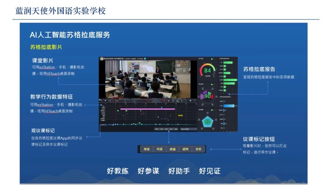 AI賦能教學(xué)教研變革 藍(lán)潤天使學(xué)校將人工智能技術(shù)深度融入“思維課堂”,并以此推動(dòng)“四備三思”“先聽后上”校本教研模式的變革。陳滬軍校長曾多次強(qiáng)調(diào):“有了AI的助力,讓教師‘看見’每一位學(xué)生的思維過程成為可能。藍(lán)潤教師已經(jīng)從‘要我教研’走向‘我要教研’,從教書匠走向主動(dòng)研究者、教育自覺者。”
